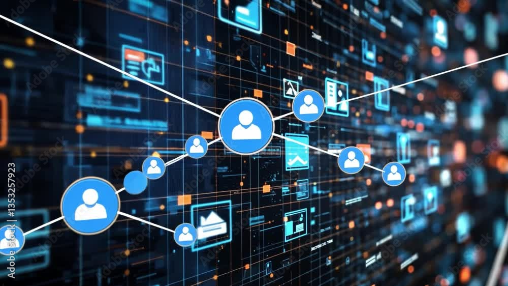 Wall mural futuristic data network with user profile icons and digital connections, representing social interac - Wall murals Wall mural futuristic data network with user profile icons and digital connections, representing social interac - Wall murals
