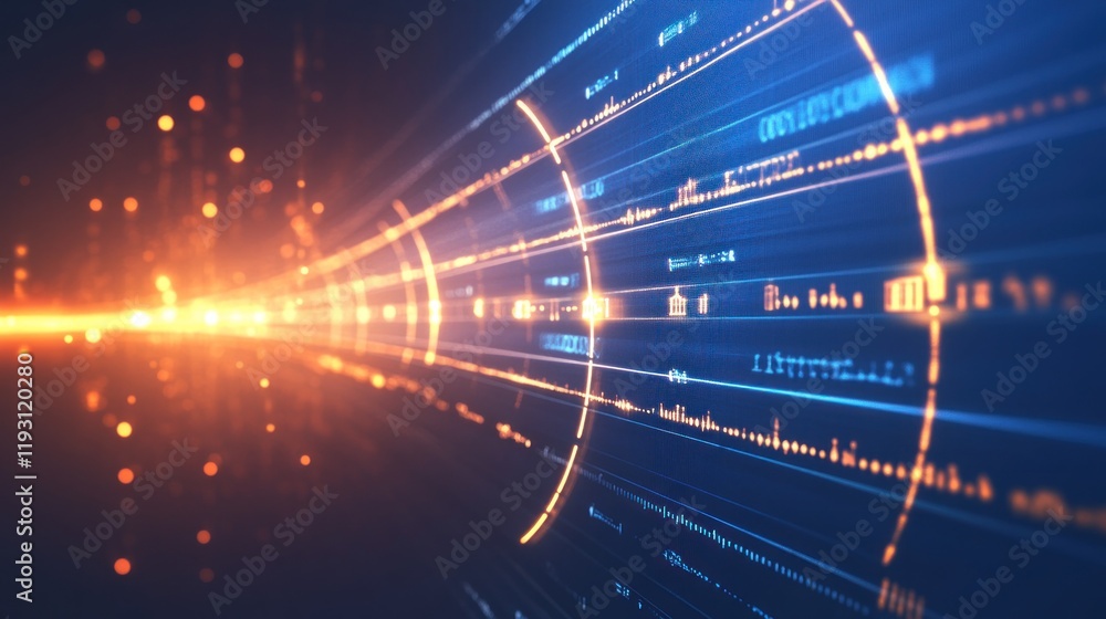 Wall mural : Futuristic data stream flowing through cyberspace with glowing particles