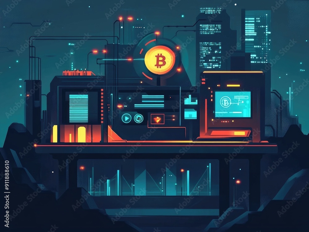 Wall mural futuristic depicting the concept of cryptocurrency mining and blockchain technology the image showca - Wall murals Wall mural futuristic depicting the concept of cryptocurrency mining and blockchain technology the image showca - Wall murals