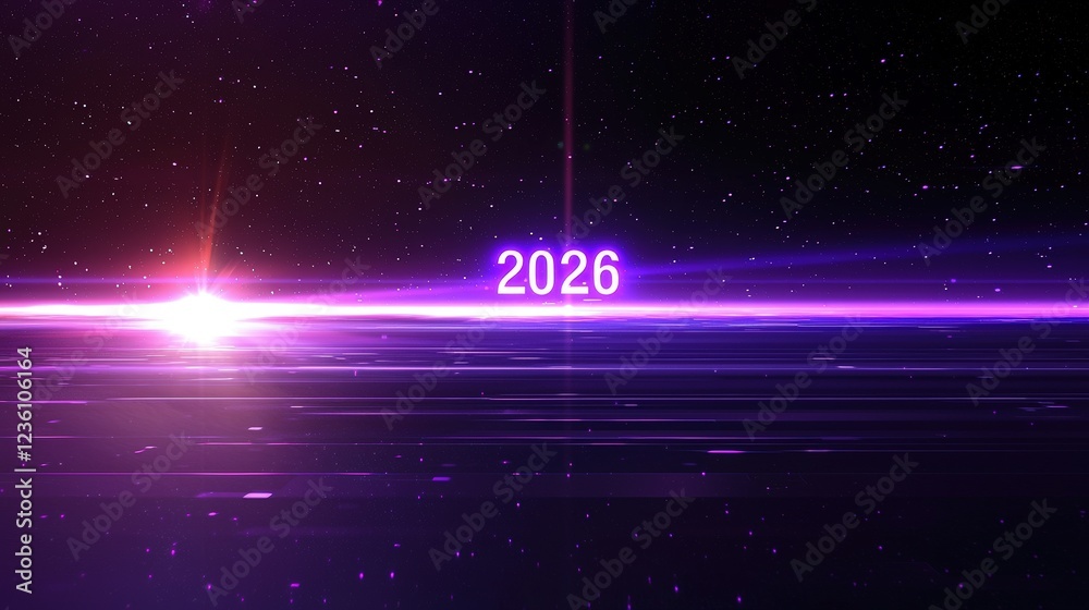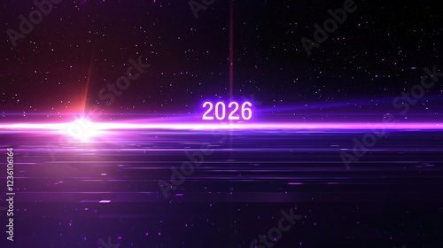 The watermark will not be included on Wall mural.: Futuristic digital background with hologram effect and text "2026" in cosmic environment