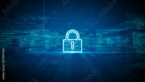Wall mural : Futuristic digital background with lock icon, representing data security, encryption, and secure onl