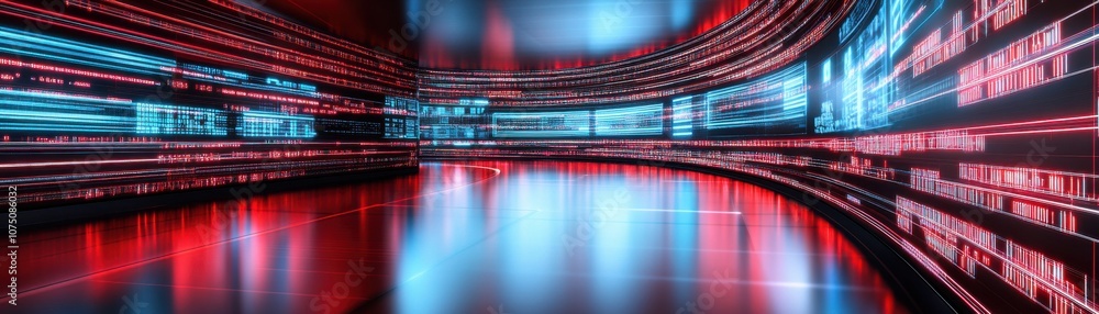 Wall mural : Futuristic digital background with vibrant neon lights and patterns -