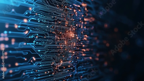 Wall mural : Futuristic digital brain visualization with glowing circuits on deep blue background