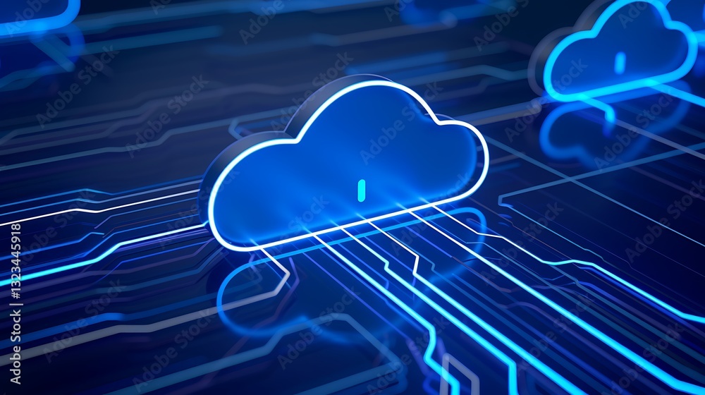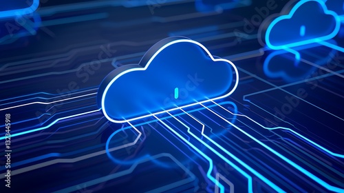 The watermark will not be included on Wall mural.: Futuristic digital cloud network with glowing lines and circuit patterns in technology conceptual il