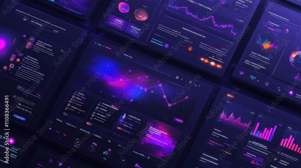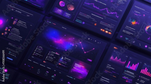 The watermark will not be included on Wall mural.: Futuristic digital dashboard with abstract galaxy background design