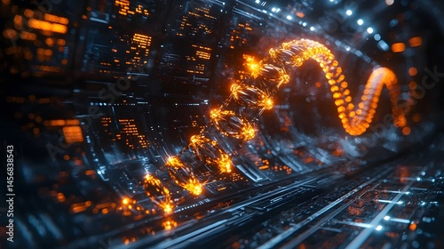 Wall mural futuristic digital data storage system with glowing dna like structures