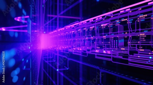 The watermark will not be included on Wall mural.: Futuristic digital data stream flowing through network