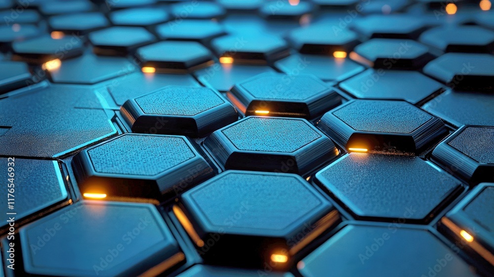 The watermark will not be included on Wall mural.: Futuristic digital geometric light pattern - a modern array of hexagon forms in 3d - abstract network