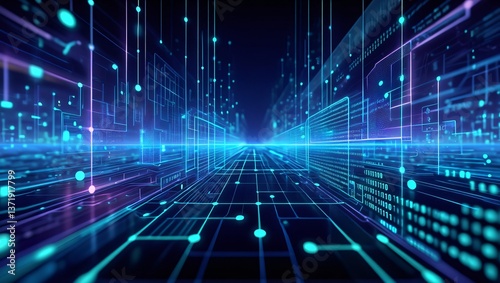 Wall mural futuristic digital highway abstract network data stream technology background - Wall murals Wall mural futuristic digital highway abstract network data stream technology background - Wall murals