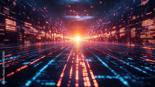 Wall mural : Futuristic digital highway with glowing data streams -