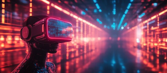 Wall mural futuristic digital interface with glowing orange data streams and graphs.