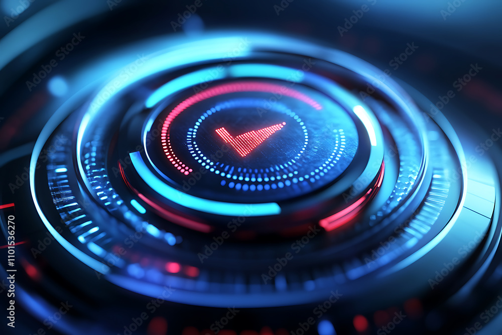 Wall mural futuristic digital interface: glowing neon play button in a cyberpunk style. abstract technology bac - Wall murals Wall mural futuristic digital interface: glowing neon play button in a cyberpunk style. abstract technology bac - Wall murals