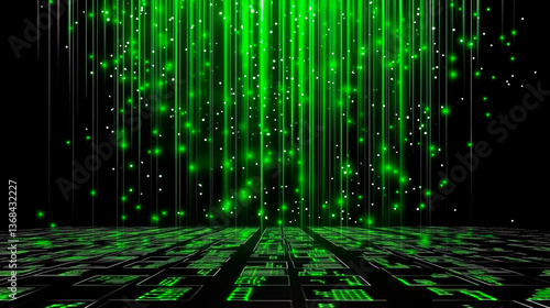 The watermark will not be included on Wall mural.: Futuristic digital matrix background with green data streams