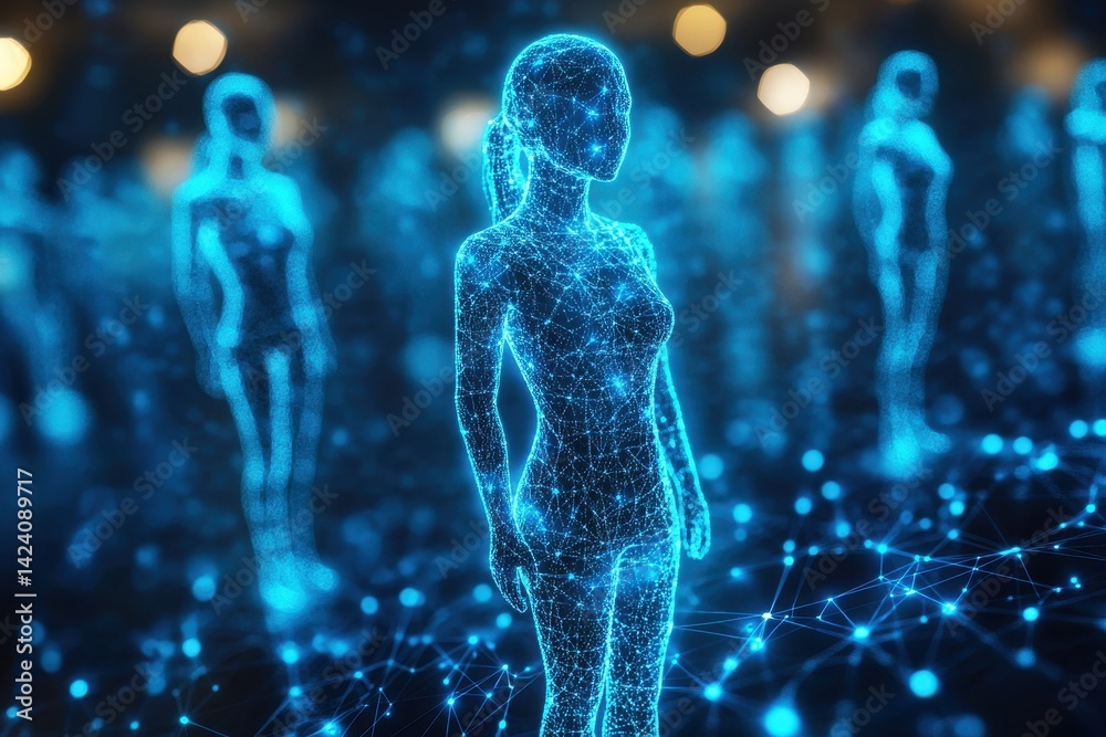 Wall mural : Futuristic digital model representing data connections and technology in a virtual environment with