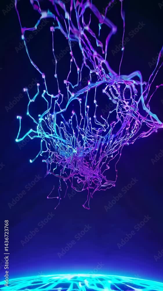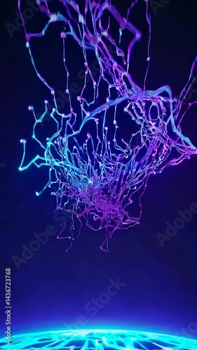 Wall mural futuristic digital network concept with glowing lines extending from a sphere. low-angle view, resem
