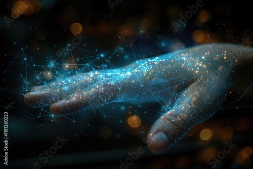 The watermark will not be included on Wall mural.: Futuristic digital network connection concept with glowing particles and bokeh lights