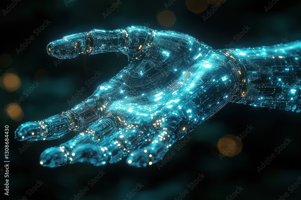 The watermark will not be included on Wall mural.: Futuristic digital rendering of a glowing technological network hand