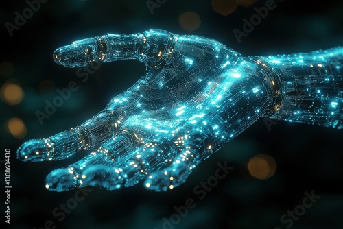 Wall mural : Futuristic digital rendering of a glowing technological network hand