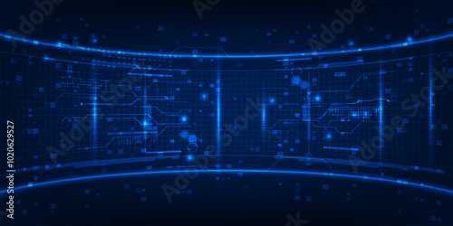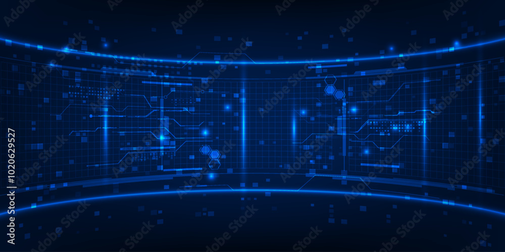 Wall mural futuristic digital space layout with wide curve screen with hi-tech architectural element.vector ill - Wall murals Wall mural futuristic digital space layout with wide curve screen with hi-tech architectural element.vector ill - Wall murals