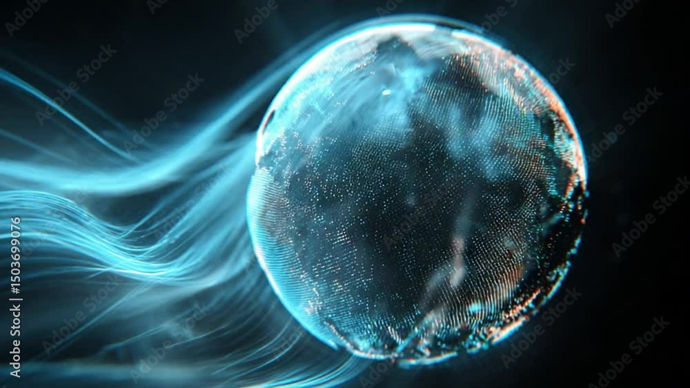 Wall mural futuristic digital sphere with data streams and light effects in dark background for technology them
