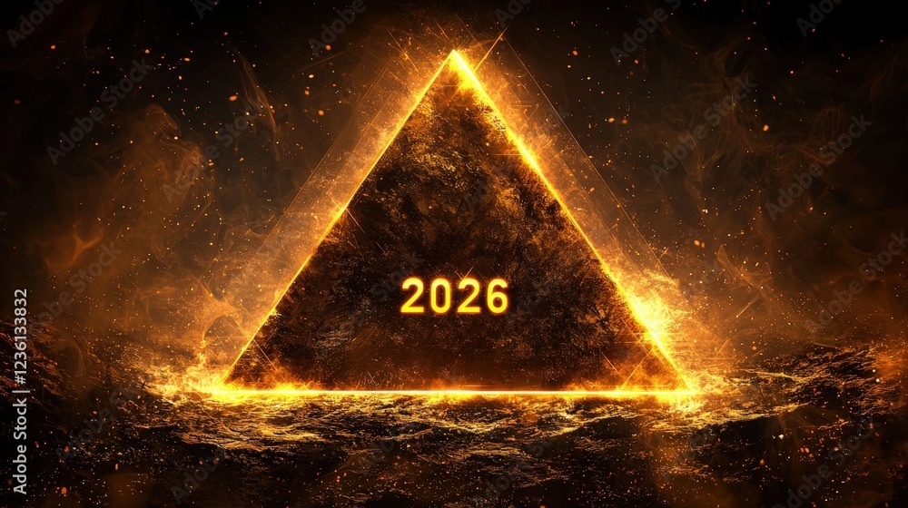 The watermark will not be included on Wall mural.: Futuristic digital technology background with a holographic triangle displaying the year 2026 in fie