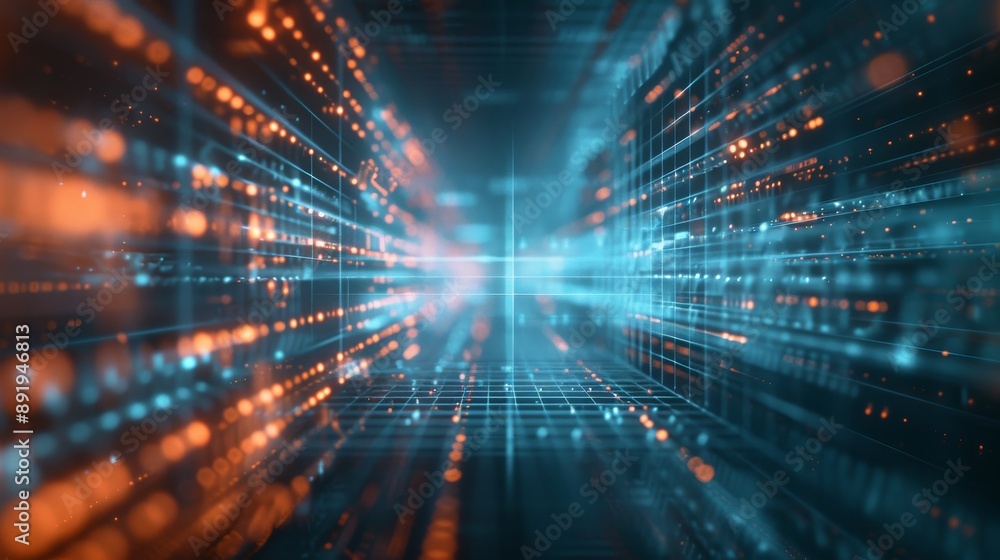 Wall mural : Futuristic digital technology background with abstract glowing lines and data points, showcasing spe