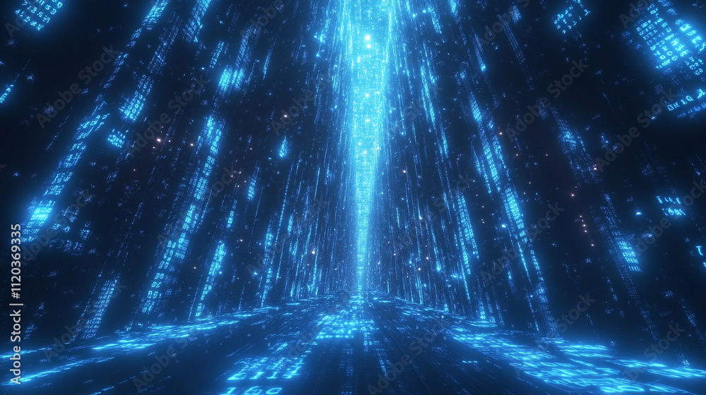Wall mural futuristic digital tunnel data stream binary code technology background - Wall murals Wall mural futuristic digital tunnel data stream binary code technology background - Wall murals