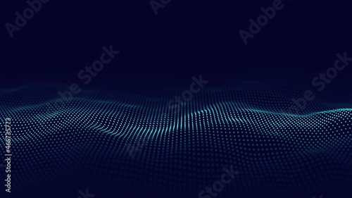 Wall mural futuristic digital wave. dark cyberspace. abstract wave with dots. white moving particles on a blue