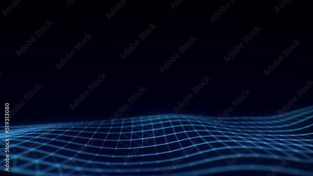 The watermark will not be included on Wall mural.: Futuristic digital wave - dark glitch cyberspace - abstract wave with dots and line - white moving part
