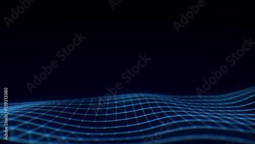 Wall mural futuristic digital wave. dark glitch cyberspace. abstract wave with dots and line. white moving part