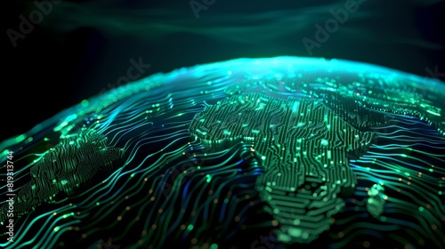 Wall mural futuristic digital world concept with glowing lines and dots. abstract data stream visual, ideal for