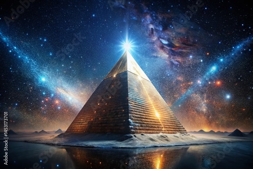 The watermark will not be included on Wall mural.: Futuristic egyptian pyramid floating in space - minimalist cosmic art