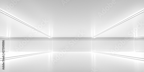 Wall mural futuristic empty space corridor with glow light and reflection. abstract background sci-fi or scienc