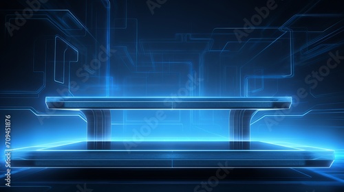 Futuristic etched circuit texture on abstract empty floating shelf - innovative design conceptWall mural