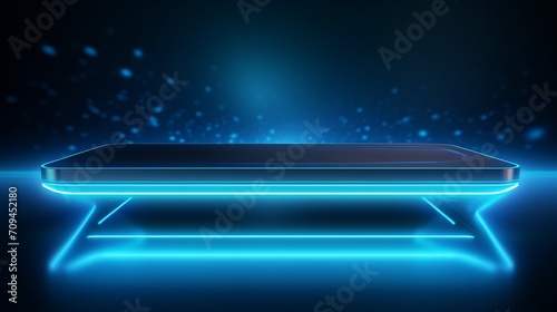 The watermark will not be included on Wall mural.: Futuristic etched circuit texture on abstract empty floating shelf - innovative design concept