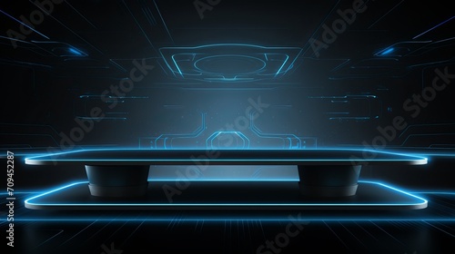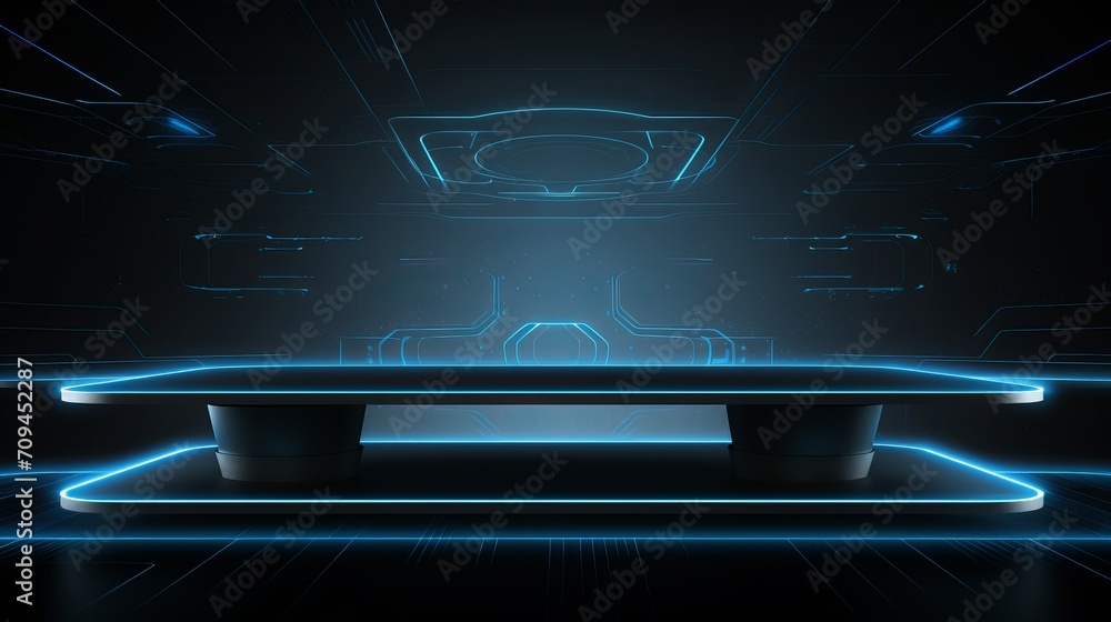 Futuristic etched circuit texture on abstract empty floating shelf - innovative design conceptWall mural