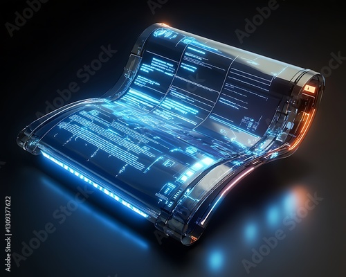The watermark will not be included on Wall mural.: Futuristic flexible digital display showcasing projected data and technology