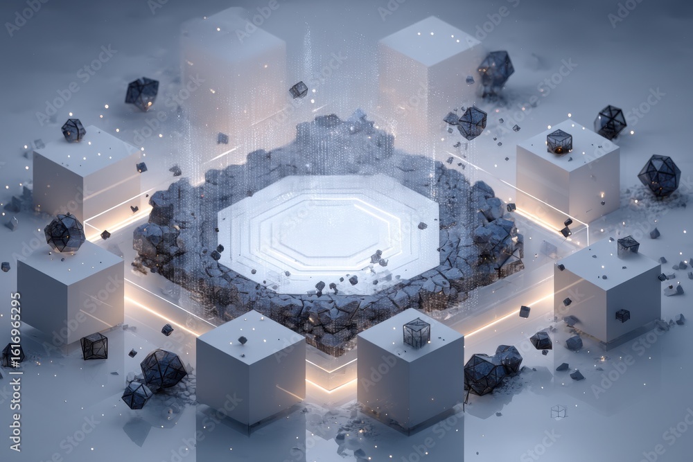 The watermark will not be included on Wall mural.: Futuristic geometric structure with glowing elements and a technological atmosphere
