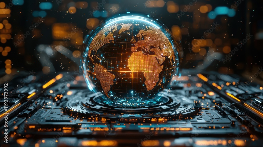 Wall mural futuristic globe with digital interface elements. - Wall murals Wall mural futuristic globe with digital interface elements. - Wall murals