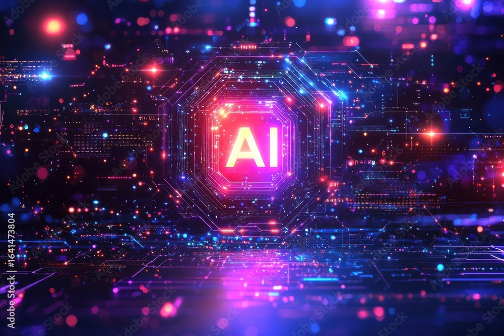 Wall mural futuristic glowing ai text surrounded by an abstract high-tech circuit board - Wall murals Wall mural futuristic glowing ai text surrounded by an abstract high-tech circuit board - Wall murals