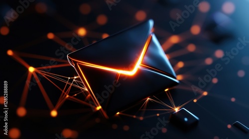 The watermark will not be included on Wall mural.: Futuristic glowing envelope amidst a digital network, symbolizing communication and technology