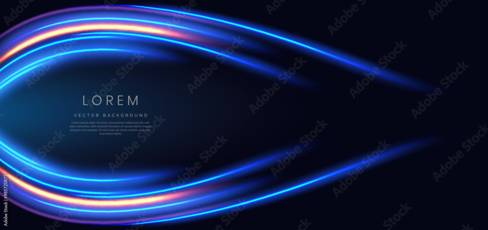 Wall mural futuristic glowing motion lighting effect and shining on black background with copy space for text.