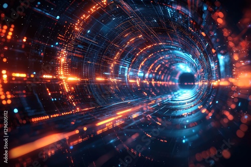 Wall mural : Futuristic glowing tunnel with vibrant orange and blue lights creating a dynamic and immersive visua