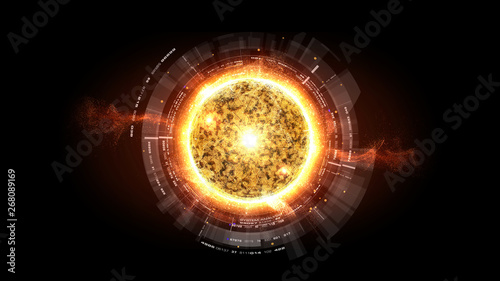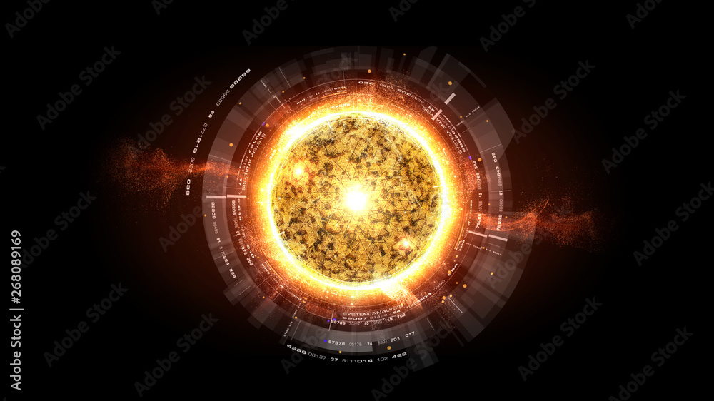 Futuristic graphic user interface head up display screen with digital holographic nuclear fusion eneWall mural