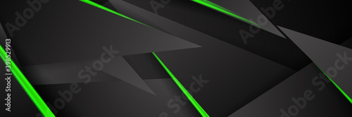 Wall mural futuristic green and black abstract gaming banner design with metal technology concept. vector illus