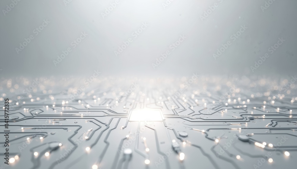 Wall mural : Futuristic grey tech background resembling processor board with light effects - abstract tech design