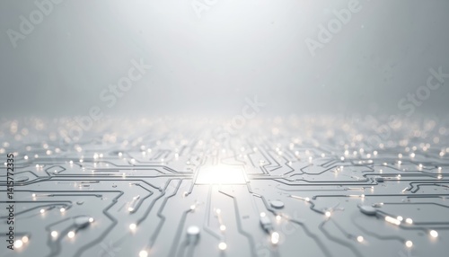 Futuristic grey tech background resembling processor board with light effects - abstract tech design Wall mural