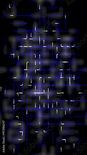 The watermark will not be included on Wall mural.: Futuristic grid loop with glowing blue and yellow lines on dark background