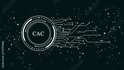 Futuristic h u d circle with c a c text and digital network lines on dark starry background technoloWall mural