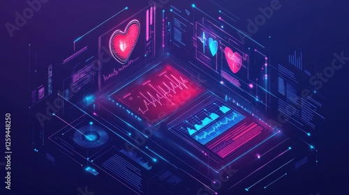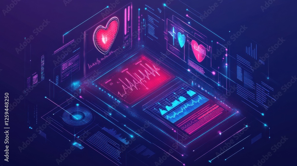 The watermark will not be included on Wall mural.: Futuristic heart health monitoring system with data visualization